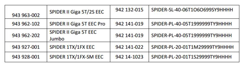942132015 SPIDER-SL-40-06T1O6O699SZ9HHHH 6 x 10/100/1000Base-T, 2 x FE/GE SFP slot